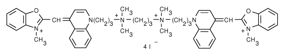 - Add Yoyo1 at 10:1 base-pair/yoyo ratio. Since we're assuming 5 nM origami of 1450 base-pairs in 10 μL, then add 0.1450 nM of YOYO into solution.