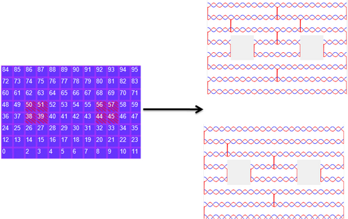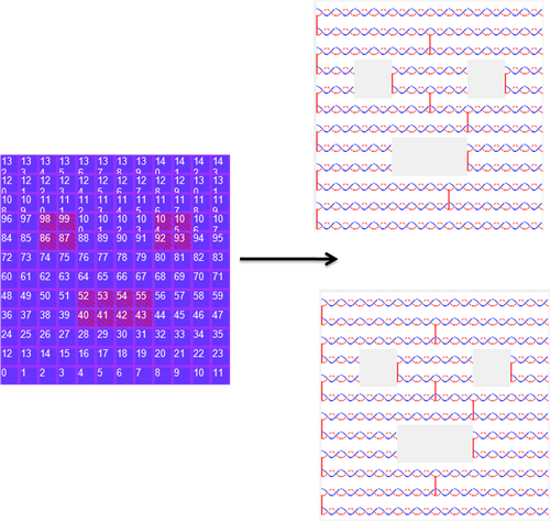 As the folding paths, positions of crossover and sticky end sequences are determined in above steps, the sequence of staple strands are easily found by using the complementary base pairs rules:A-T, G-C. DNAmazing produced a list of staples sequences at the final step. These information can be used to create DNA Origami structures in wet lab experiments.