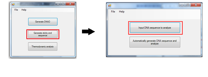 To support generation of sticky end, as well as, to ensure that the sticky end will not affect the scaffold folding, an additional component is provided. User can choose to manually input a DNA sequence, and the program can help to check for the most stabilizing binding position in the scaffold. The binding energy is also calculated for users’ reference.