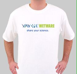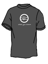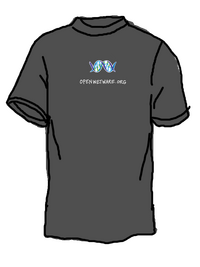 - Jenny 12:53, 3 May 2007 (EDT): Click to zoom. T-shirt color can be changed, but after experimenting with colors, dark gray seemed most practical and looked best with the designs.