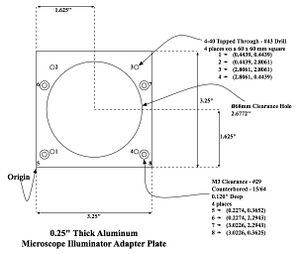 I flubbed on the dimensions for the illuminator arm adapter plate. Below are the correct dimensions.