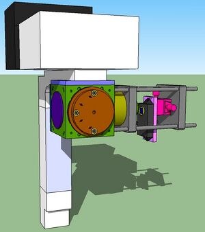 All items save one shown can be purchase from different companies so there is minimal machining involved. The only part that needed to be fully made was the orange one. The yellow one is a modified baseplate from Newport that we only needed to tap 4 holes in. I can't find my diagram for the part I had to completely machine, but once I do find it, I'll post it.