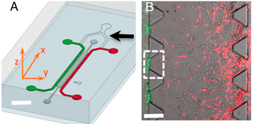 [24] Walsh, C. L. et al. A multipurpose microfluidic device designed to mimic microenvironment gradients and develop targeted cancer therapeutics. Lab Chip 9, 545–554 (2009). DOI: 10.1039/b810571e