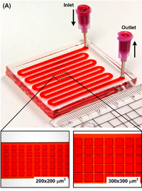 Cells respond to mechanical and chemical stimuli. Flow in microsystems engineering allows for easy establishment of mechanical and chemical gradients to determine how cells respond to fluid forces, cytokines, hormones, and gases.[2] If the cells being analyzed circulate physiologically, such as circulating tumor cells or bacteria, flow allows for a more accurate model of what is expected of these cells’ functions in vivo.[12] Not only do microsystems help accurately replicate cell, tissue, and organ function through the precise control of various parameters, but they can also produce larger sample sizes than conventional systems, allowing for more statistically significant experiments.[2] This is especially useful for performing drug testing on organs-on-a-chip (Figure 14).