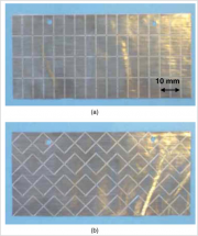 To tailor program the cylindrical shape memory Kuribayashi and You aged the material at 773k for 20-40h[1]. Next a folding pattern is devised and creases are applied to the foil by using a negative photo-chemical etching process[1]. Following the rules of origami, different patterns were made on either side side of the foil. Once the foil was etched, all that needed to be done to fold the stent was to sub cool it using liquid nitrogen. Folding occurs because the foil contracts at cold temperatures, and the foil buckles at points where there is less stress. Points of less stress for these stents are the etched lines.