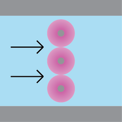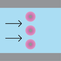 Direct valving relies upon the responsive swelling of hydrogels placed in the desired stream to be controlled. These valves act as passive flow controllers, reacting to the changing pH in the subject stream and either swelling or shrinking. These types of valves commonly come as multiple pillars arranged in-line, perpendicular to the flow of the stream.[8] This valve set up is not commonly used because it relies on the speed at which the hydrogel responds to pH. This is usually on the order of hours to even days, depending on the thickness of the gel used. The largest benefit of this valve is the ability to have total autonomous and effortless control of fluid flow past the valve. The geometries of the hydrogel are highly customizable and optimization modeling has been thoroughly explored, allowing for effective bespoke valve design.[9][2]
