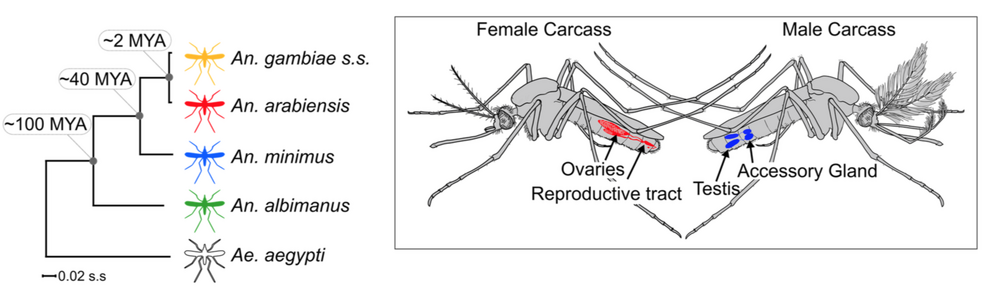 Apart from the sex-limited Y chromosomes that are gene poor and small, males and females share a common genome. We are exploring how this shared genome generates the significant sexual dimorphism between the sexes and how these differences express themselves evolutionarily of the genomic landscape of mosquitoes. The aim of our work is to characterize the evolutionary properties of sex-biased genes and to understand what and how these forces are shaping mosquito biology.