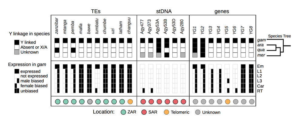 Because Y chromosomes of most species are highly heterochromatic and repeat rich, they are generally resistant to genome sequencing and assembly efforts. For example, Anopheles Y chromosomes have been completely a black box for more than a decade since the first genome sequencing project was completed. To overcome this problem, we are leveraging a number of genome sequencing technologies with tailored computational methods to unwrap the content and evolutionary history of the Y. We have recently shown this can work by completing the primary discovery and exploration process for the Y chromosomes of a group of malaria mosquitoes in the gambiae complex . We have shown that their Y chromosomes are mainly composed of a handful of repetitive elements that have become massively amplified and vary dramatically between closely related species and even within a population. We have also catalogued the genes present of the Y and identified one of these as the likely sex determiner (which was subsequently functionally confirmed) and a possible male fertility gene. Our efforts are far from complete. A complete assembly is still unattainable using current methods and sequencing technologies. Our long term goal is to build the first fully completed Y chromosome assembly and to describe the functions of the loci that are on it.