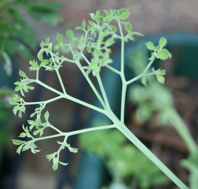 Parsley foliage result from recessive alleles at two different genetic loci. It combines the recessive trait for hyper-tendrils / semi-leafless with the recessive trait for all tendrils converted into leaflets. The first trait makes extra tendrils, the second trait masks the first by making all the tendrils tiny little leaves. Parsley-leaved foliage has seen some popularity as an edible green. So named because the tendrils that have been converted into small leaflets resemble the appearance of parsley.