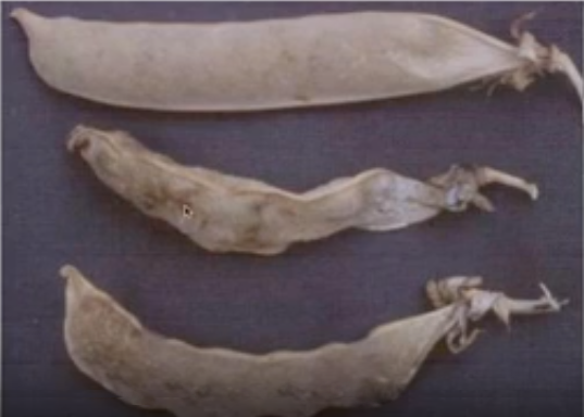 | Pod fiber gene #1 (p) | rec | 6 | P V normal parchmented pod; p V strip of sclerenchyma; P v inner membrane reduced to patches of sclerenchyma; p v entirely without parchment. | |