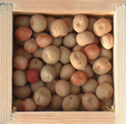 The peas themselves, when dried, have a similar colour to the dried pods. They're a sandy buff with a variable rose-pink blush. They're smaller than a modern pea and generally smooth and round.