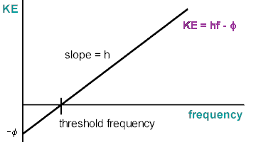 Using filters on the h/e apparatus for pure light, we can discover the stopping potential of an electron, in doing so we can find the kinetic energy and graph it with frequency to find the work function, [math]\displaystyle{ W_0 }[/math], and h, Planck's constant. (see Fig. MM - 3)