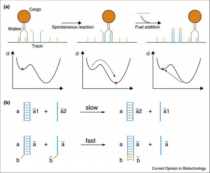 - DNA based synthetic molecular walkers are reminiscent of biological protein motors. They are powered by Hybridization with fuel strands, environment induced conformational transitions, and covalent chemistry of oligonucleotides.