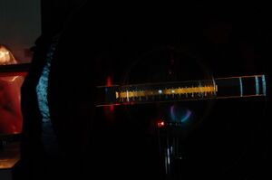 First, we had to calibrate the spectrometer by shining a mercury lamp at it, and comparing the measured wavelengths with accepted values. Then we measured the visible second-order emmission spectra from regular hydrogen and deuterium lamps (also known as the "Balmer series") with the spectrometer in order to determine the Rydberg constant, as well as a krypton lamp to determine how well our equipment could resolve.