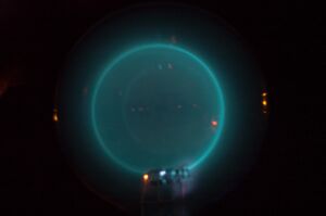 Secondly, just because the light we see is of approximately 500 nm, does that really indicate the average energy lost by the electron? As you know from the energy levels of neon experiment, an inelastic collision can exchange differing values of energy when above the ionization threshold (as you are). I can't see an obvious reason that the average collisional energy would be about 500 nm, though I do agree that's the color we see. Why we see that particular color remains a mystery to me. Andy why it's violet at lower energy is also a mystery.