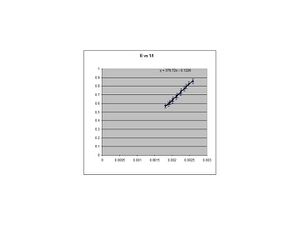 After plotting the data and using Microsoft Excel and the LINEST(Microsoft Corp., Redmond WA) function to gain a least squares fit, the slope of both plots can be entered into the equation: