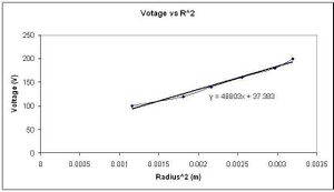 The final calculation uses google doc's spreadsheet program (linest) to calculate a linear relationship between the voltage and the square of the beam radius.