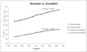 We were also able to generate linear plots of diameter vs. 1/sqrt(kV).