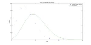 Initial background data has shown that background radiation can be predicted to a fairly good degree of accuracy Figure 3 ie the percent difference between the standard deviation of the data compared to the standard error of the fit was less than 3%. Since the data and the Poisson fit were almost identical I concluded that the process that generated the data is Poisson. This realization means that the calculated averages of data sets can be used to predict the average values of future background radiation events (within a reasonably small time period ie a few minutes to a few hours later).