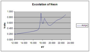 This lab is designed to show the work done in the Frank-Hertz experiment of 1914 which was done to prove the quantization of energy in atoms. In this experiment we will fire free electrons to at neon atoms to show that a certain minimum energy is required to break free electrons. This collision that occurs moves bound electrons to an excited state. This experiment should show what these minimum energies are by the observed peaks.