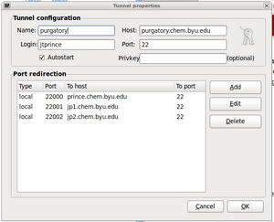 ssh -N -L22000:<username>@jp1.chem.byu.edu:22 <username>@purgatory.chem.byu.edu