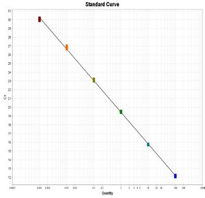 - From this, make serial 1/10 dilutions down to 10 fM (5 total concentrations), e.g. 20 μL previous dilution + 180 μL DNA dilution buffer.