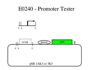 - GFP Promoter Tester Version 1 E/S <BBpart> I20244</BBpart>
