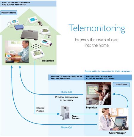 Remote patient monitoring (RPM) is a broad term used to describe monitoring patients health outside of a clinical setting. Through this technique, health officials can monitor chronic diseases of a patient at their residence. This type of monitoring ideally relieves the health care system of many unnecessary hospitalizations and time spent in hospital stays. Meanwhile it provides the patient with the care and attention on as needed basis. This gives comfort not only to the patient but to the family of the patient. This health care system requires a degree of compliance from the patient and understanding of certain diagnostics. Although integrative systems can be set up that will eliminate most if not all of the steps patients must take in independent health care. The type of monitoring system(s) are also dependent on the condition of the patient and chronic illnesses they possess. Current RPM are limited in health care settings because of monetary obstacles, the scope of the technological shift, as well as ineffectiveness shown for RPM in trial settings. A large scale randomized control trial was conducted in the United Kingdom that showed significant decreases in hospital stays, but progress decreased quickly when the program ended.