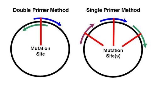This protocol uses two oligos, each containing the desired mutation. It is more reliable than the other protocol, but can only mutate at one location (1-3bp) at a time.