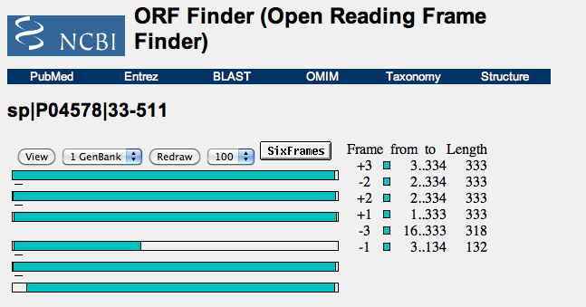 - Opened up the NCBI link and entered in FASTA format of gp120 to use the ORF Finder. Here are the results: