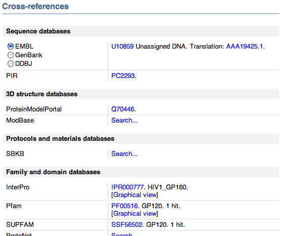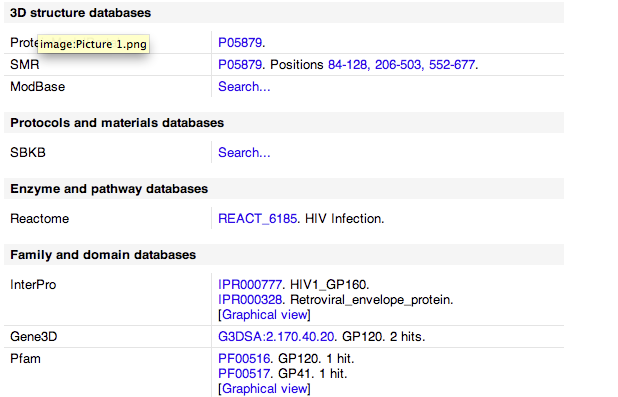 - Looked at cross references which had links to other sites with protein information which included some of the following.