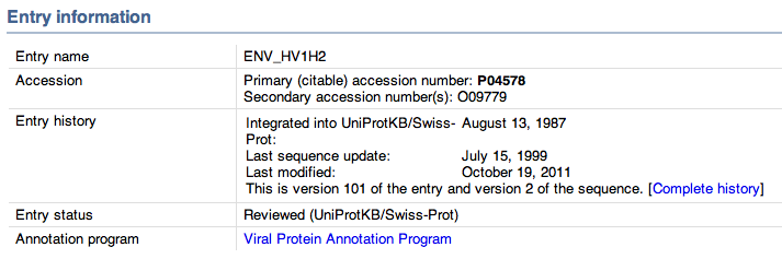 - Determined AA sequence of gp120, here is the FASTA format: >sp|P04578|33-511