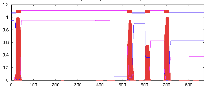 - Here is results of TMHMM, spiked areas show where transmembrane region most likely found.