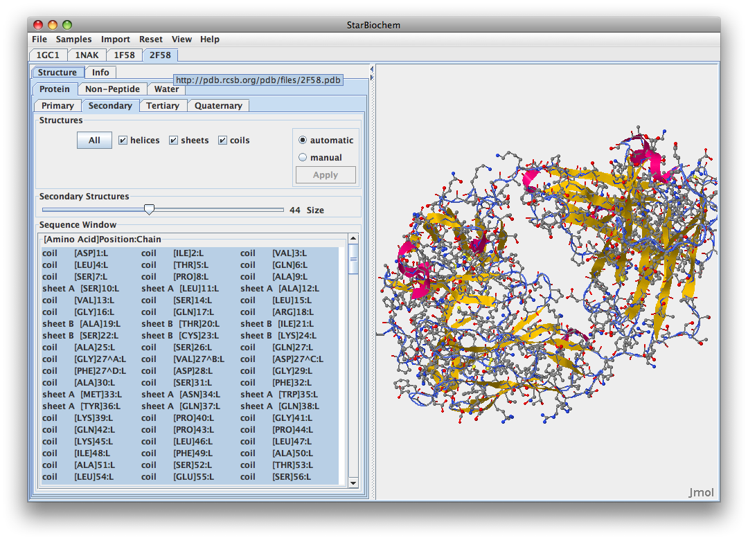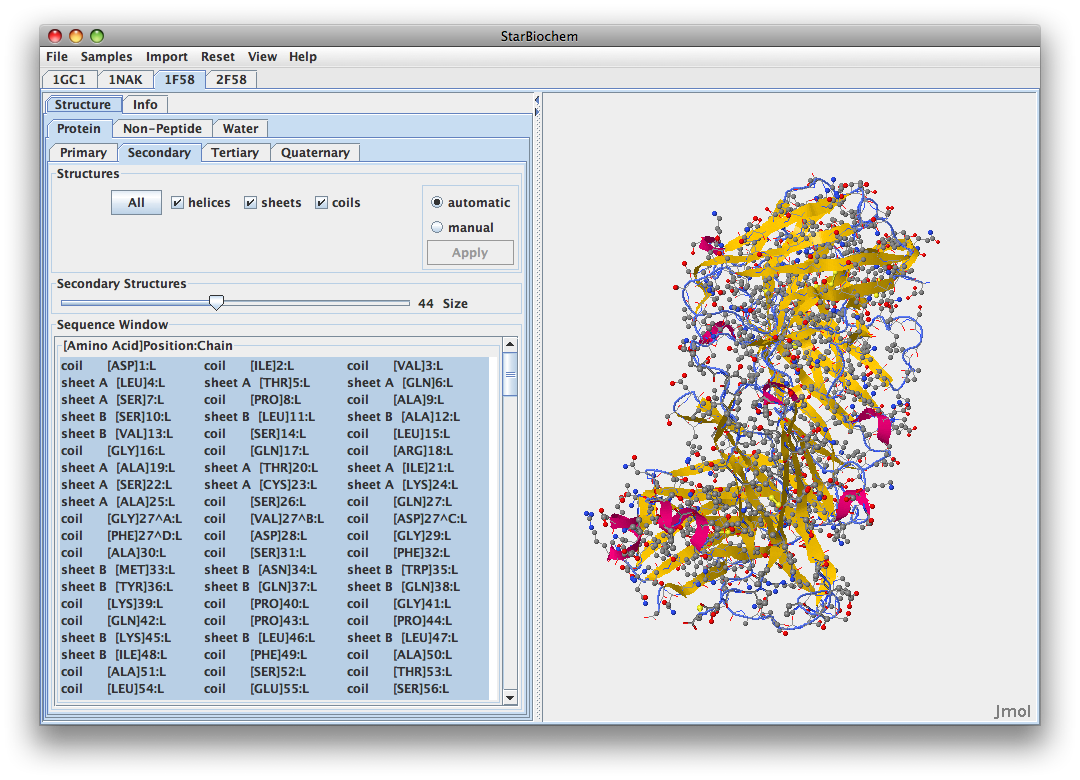 - Imported all structres: 1GC1, 1F58, 2F58, 1NAK.