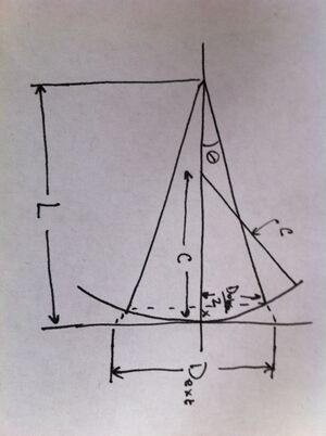- [math]\displaystyle{ \frac{D_{ext}}{2} = L\tan{\theta} }[/math]