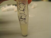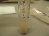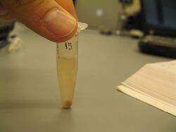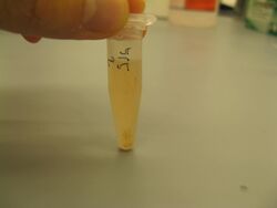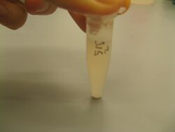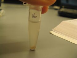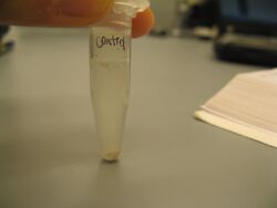 - Mix and check for precipitate - if no precipitate, spin down in centrifuge and look for pellet