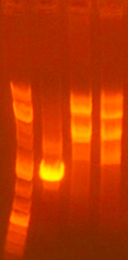 - Results of the analytical gel showed that it succeeded. The cells have an approximately full length plasmid: Gel pic