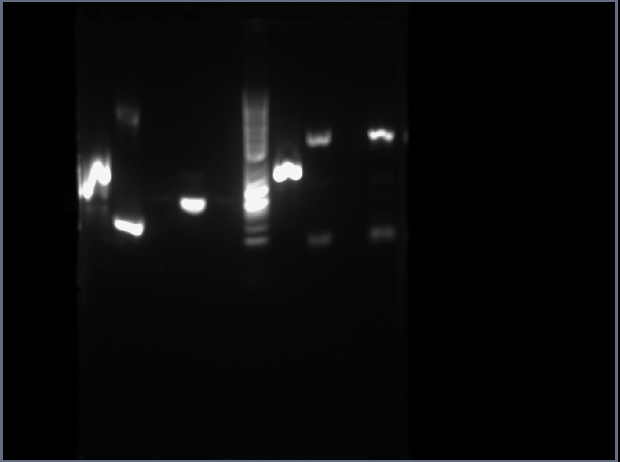 Did partial EcoRI/BamHI digest of PCA product as well as the gel for the 2 PCR reactions from before.