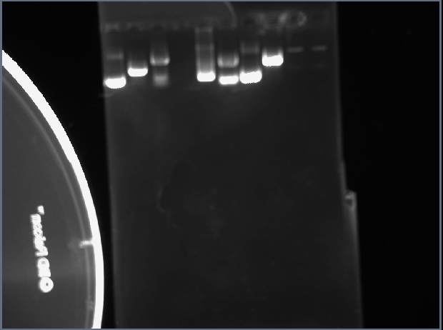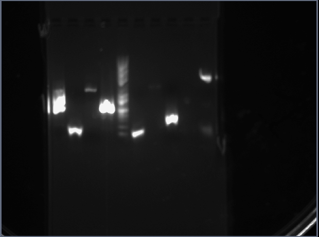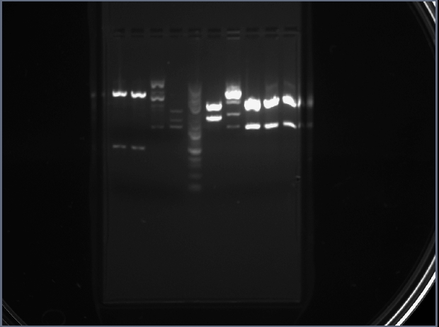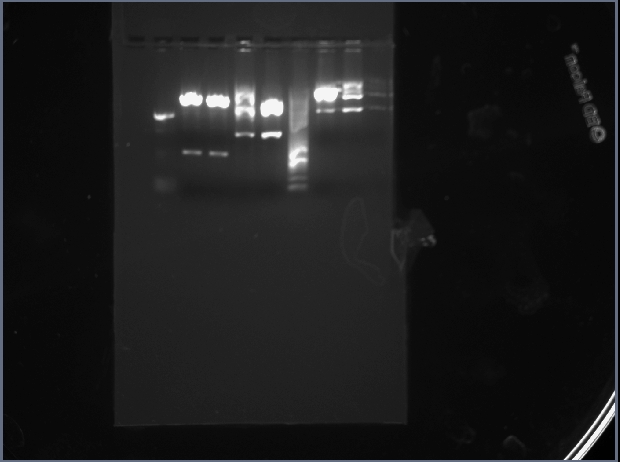 - It appears that there were five bands present, two of which appear to be 2.5kb and 1.2kb as expected from the digested product plasmid.