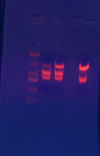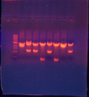 Lanes 2, 3, 5, & 8 looked promising; I realized that they shouldn't be red because there is not promoter, so anything that was red like lane 1 is most likely background; i sent for sequencing since I want to have this part anyway.