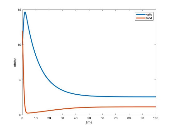 - The purpose of this assignment was to prepare a chemostat simulation in MATLAB and compare the computations to a steady state outcome.