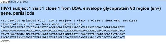 - This sequence was from subject 1. GenBank and the Fasta both contain where the section of HIV came from.