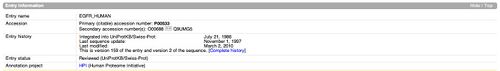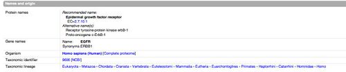 - For this particular chapter we begin by looking at a particular entry which in this case was EGFR_HUMAN and from this we see the entry information and accession numbers which was the case for this portion and this is what we see: