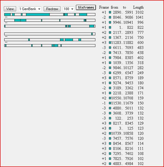 - Based on the exercise implemented on the Bioinformatic for Dummies an open reading frame was done this occurred by following the instructions and this is what the open reading frame of Rickettsia conoril looks like: