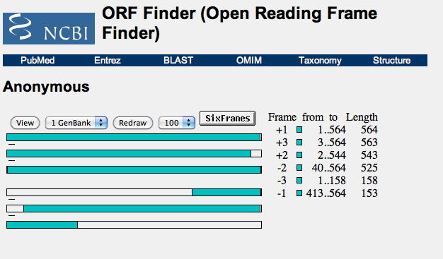 - Seen here is the DNA sequence which is displayed as six parallel horizontal bars and corresponds to one of six translational frames