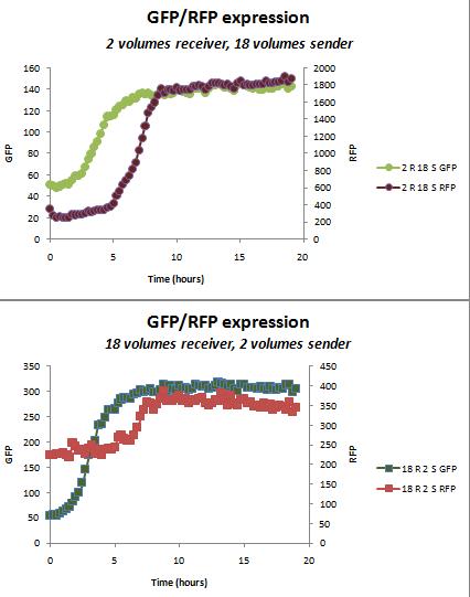 Above shows that the optimal ratio for eventual GFP may be around 15 receiver, 5 sender.