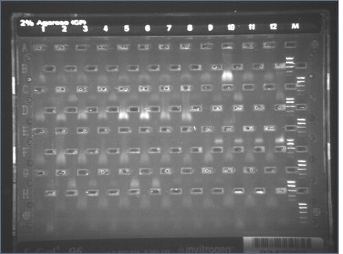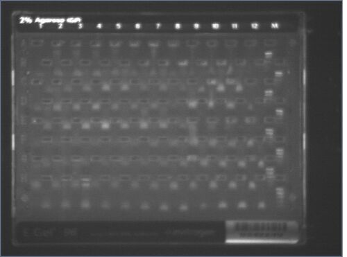 Also, in parallel, ran "normal" E-gel, all with 3uL of miniprep.