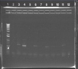 - 3 strep- RFP + Jslo1 (1:100 dil) 10ul: 9 red, 12 white