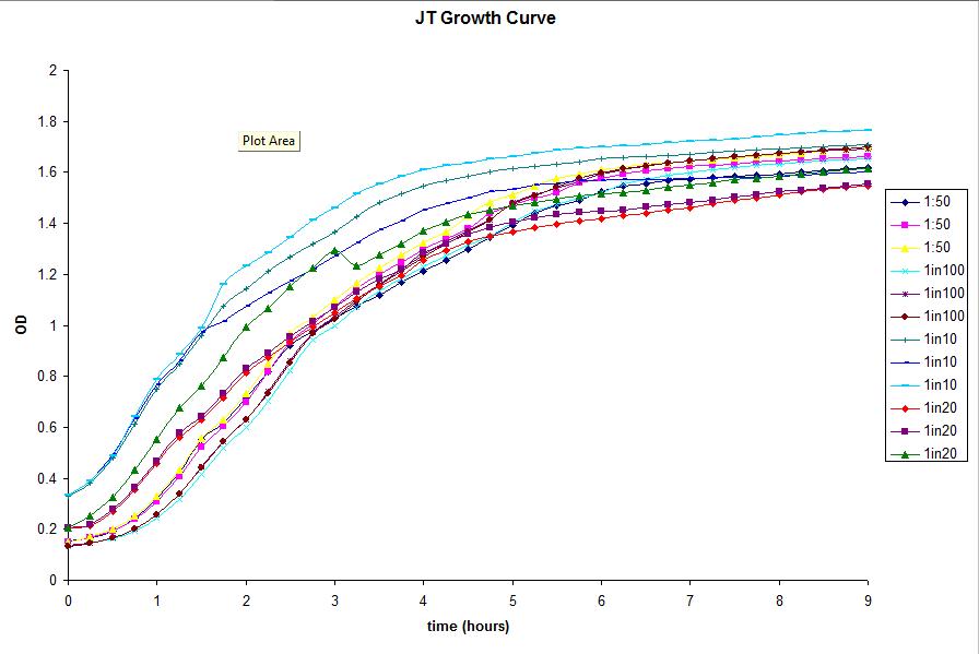 Most recent growth curves, 7/17, Our constructs in BL-21: