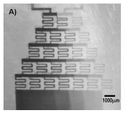 Due to the printing of larger structures that can be shrunk down, complex devices can be made rapidly, such as gradient generators. An example of the gradient generator that was produced using this method is located in Figure 3.